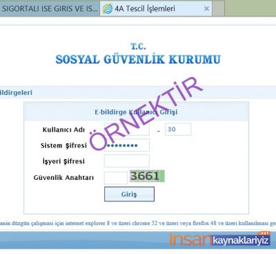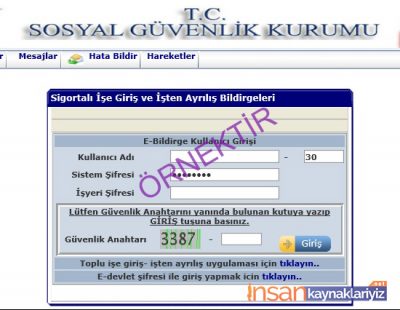 4 – Bu kısımda SGK işyeri açılışında verilmiş olan şifremizi (E-Devlet hizmetinden de alınabilmektedir) giriyoruz ve giriş e tıklıyoruz.