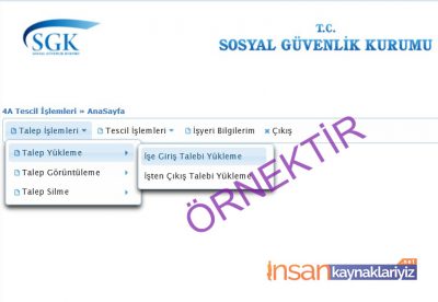 5 – Açılan sayfada “Talep Yükleme” ye tıkladıktan sonra gelen ekranda “İşe Giriş Talebi Yükleme” kısmına tıklıyoruz.